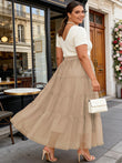 Plus Size Tulle Maxi Skirt Tiered Flowy - Khaki-Moon Wood