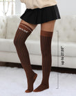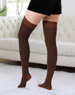 Elevate your style with Moon Wood's Thigh High Socks in Coffee. Featuring delicate vertical stripes with a raised knitted texture, these socks add subtle dimension to any outfit. The slimming vertical lines are designed to visually lengthen and straighten your legs, flawlessly enhancing your proportions. More than just a warm accessory, these stylish socks blend functionality with a fashion-forward edge, transforming your everyday look into a confident statement.