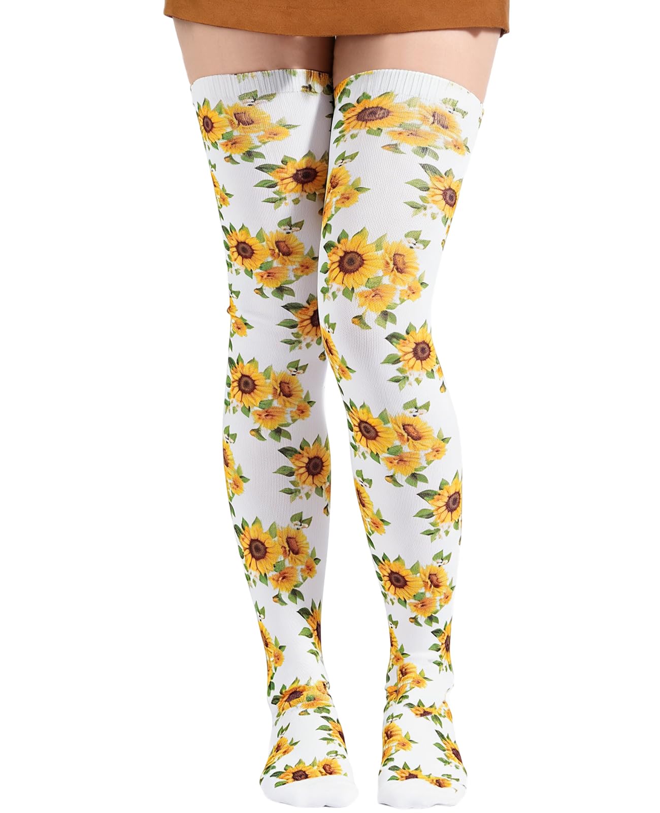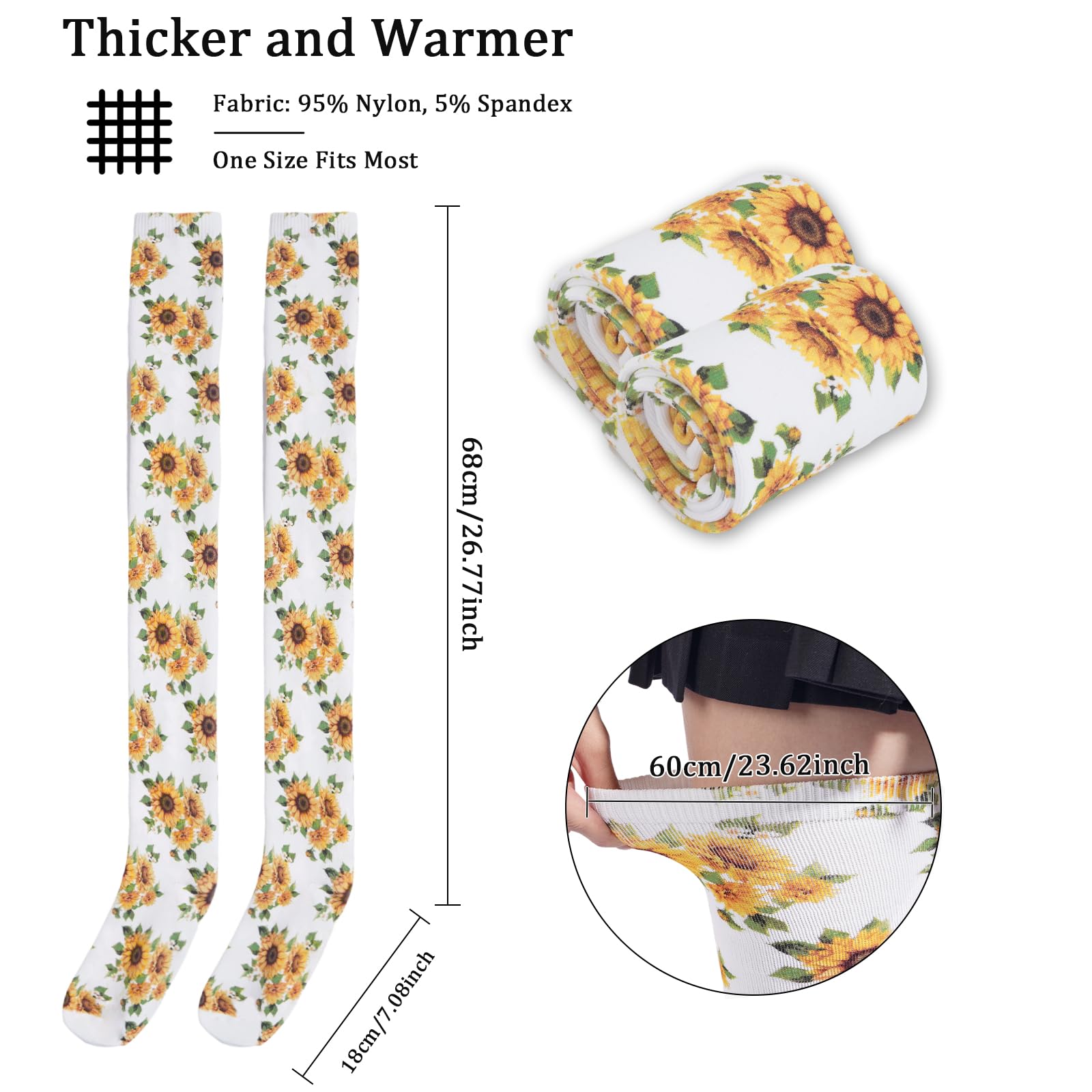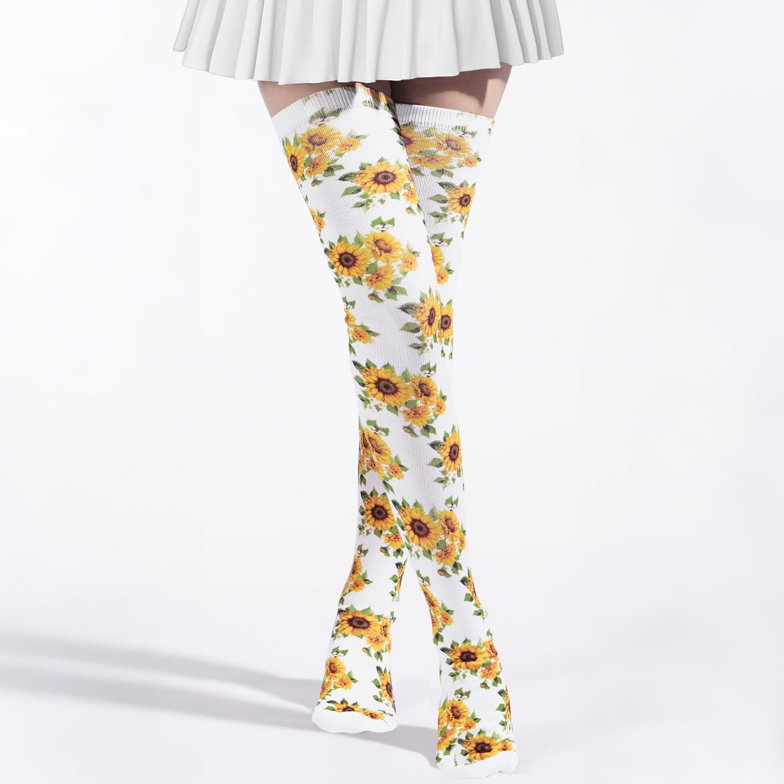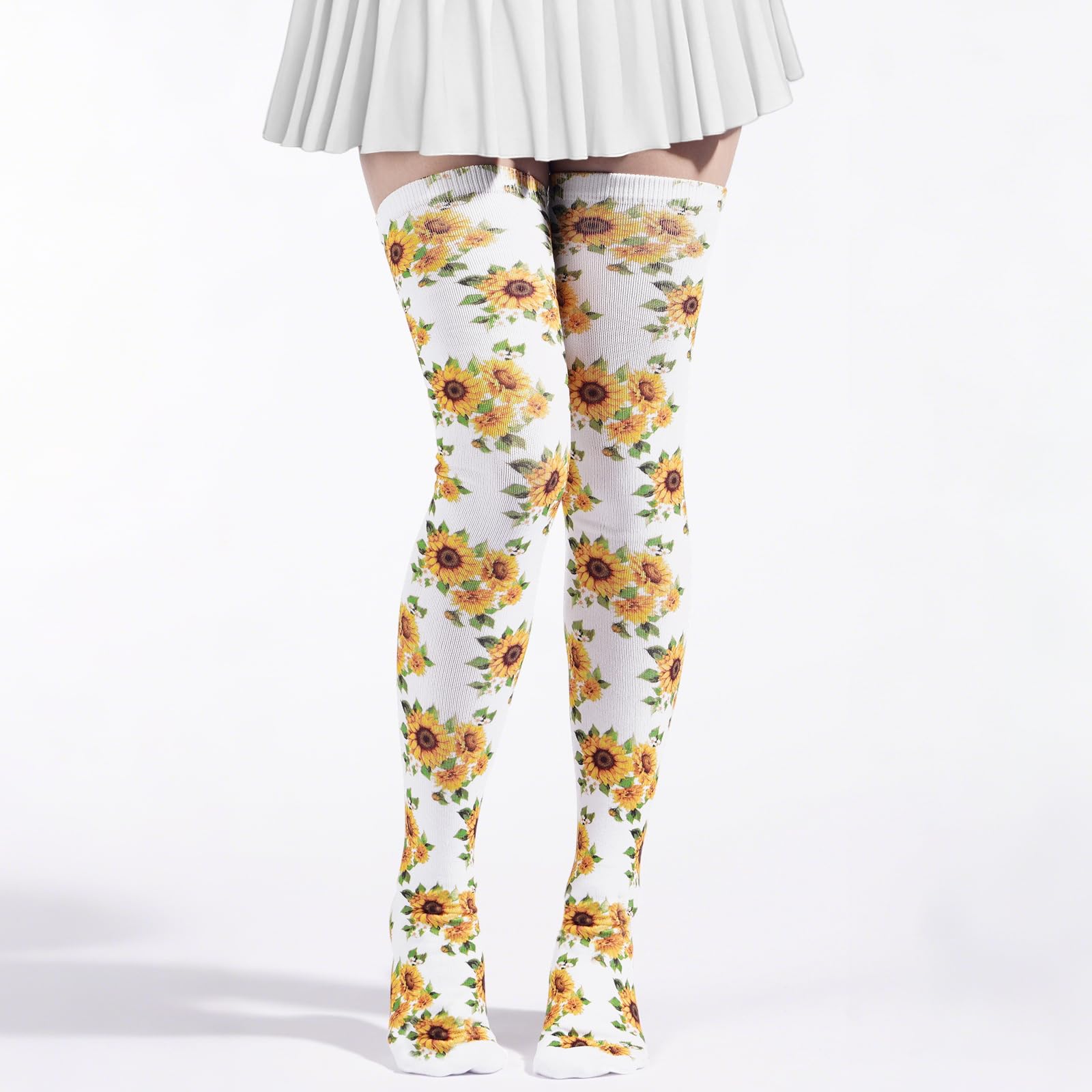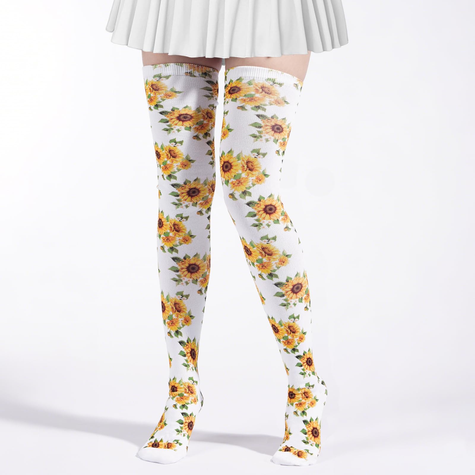 Brighten your everyday style with Moon Wood's Women's Thigh High Socks in Sunflower print. Designed with delicate, small floral patterns in a soft color palette, these socks bring a sweet, fresh vibe perfect for spring, summer, and autumn. Crafted from warm, soft materials, they offer both comfort and charm—ideal for pairing with floral skirts, denim shorts, sundresses, or knee-high boots. Add a feminine touch to your casual or picnic outfits with these lovely, understated novelty socks that celebrate the sweet aesthetic.